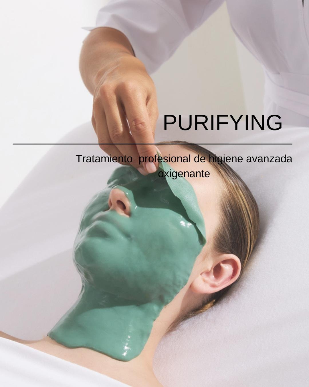 Tratamiento profesional oxigenante purificante Purifying es el tratamiento profesional de higiene facial que combina tecnología médica con la cosmética profesional más avanzada para proporcionar a tu cliente una experiencia de limpieza integral. En la superficie de la piel, sus activos eliminan suciedad, impurezas y células muertas. En las capas más profundas la acción del oxígeno puro detoxifica las células retrasando su envejecimiento.