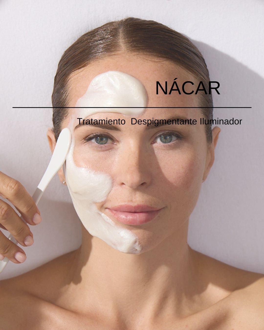 Tratamiento profesional despigmentante iluminador El tratamiento profesional en 6 fases Advanced Nacar con acción aclarante, previene y trata eficazmente la aparición de manchas, aportando luminosidad al rostro. Una fórmula única que asocia propiedades exfoliantes y renovadoras, con activos despigmentantes y antiedad para una piel más homogénea, más lisa y firme. El tratamiento se completa con la icónica Algae Peel-off Mask, que optimiza los beneficios de los activos favoreciendo su absorción y proporciona una intensa hidratación